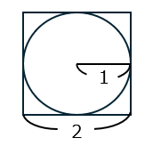 1辺が2の正方形の中に、半径1の円がぴったり入っている図形を考えます。