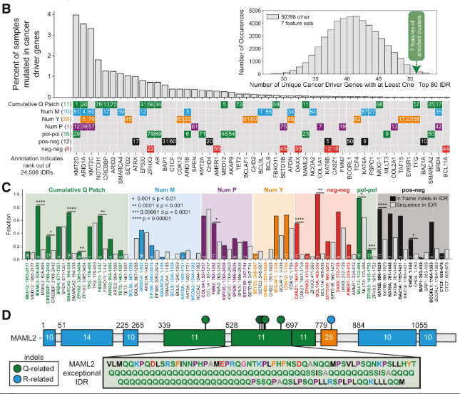 さらに、論文ではがんドライバー遺伝子や融合タンパク質(Fusion Proteins)についても解析しています。がんに関連する変異は、IDRの中でも特に特徴的な(Zスコアが高い)領域、すなわち「例外的なグラマー」を持つ場所に集中していることが示されました。